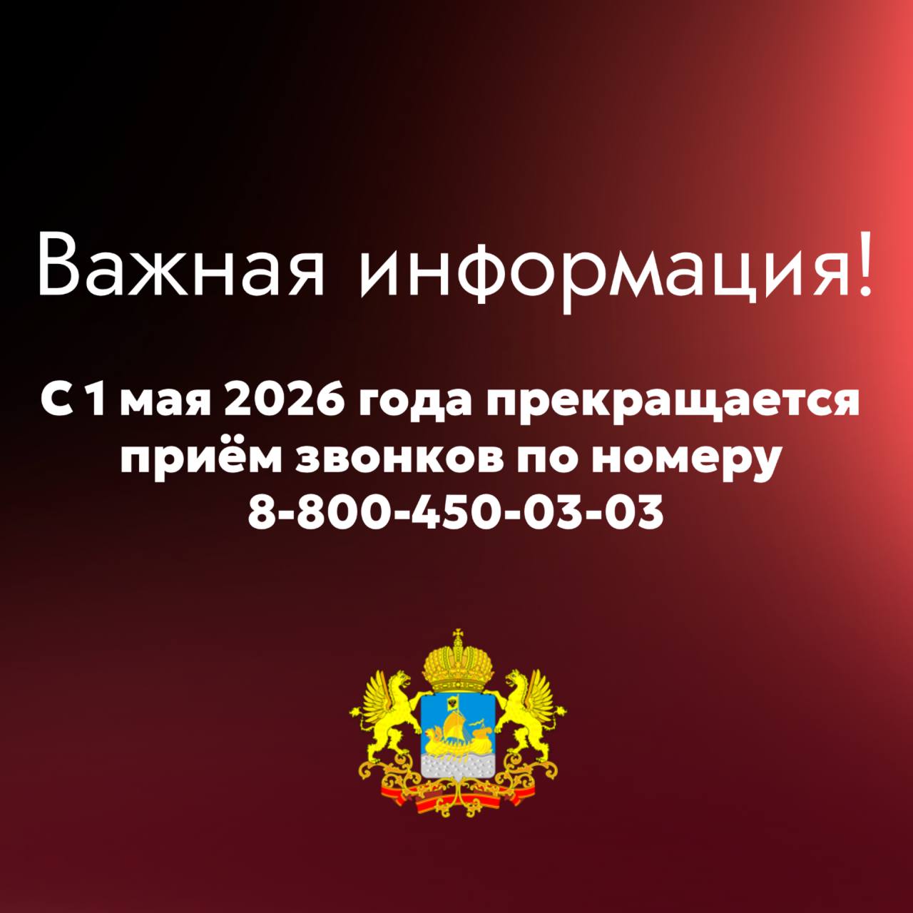 С 1 мая 2026 года прекращается приём звонков по номеру 8-800-450-03-03